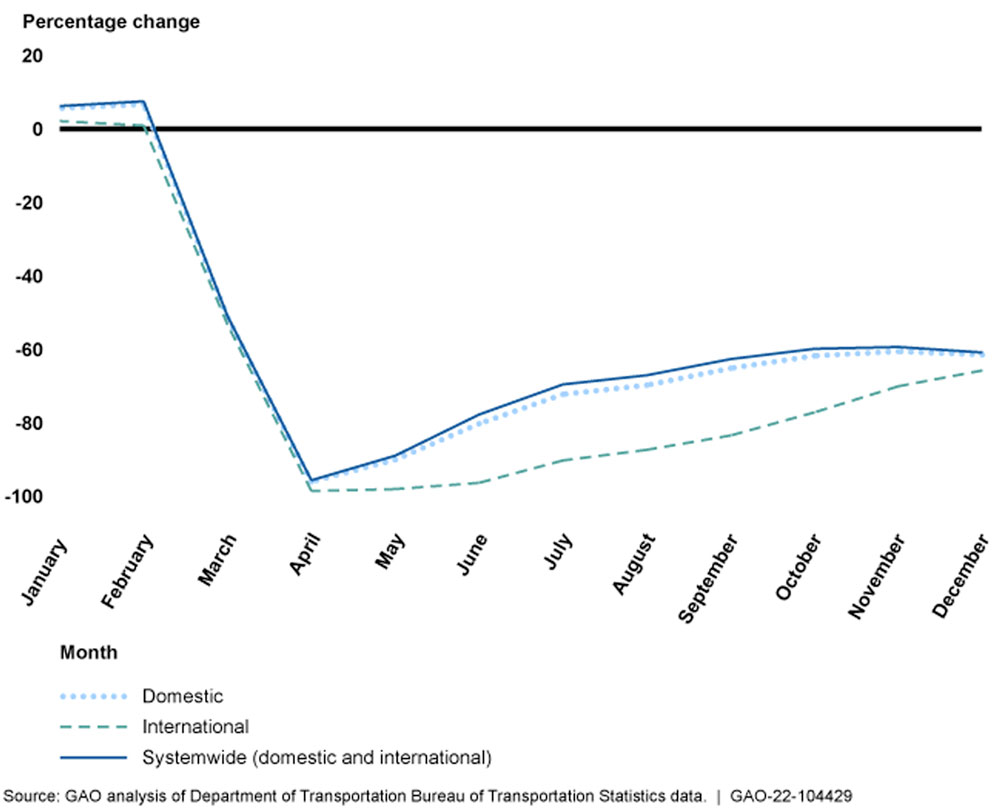 U.S. Airline Passenger Traffic, Percentage Change 2019 versus 2020