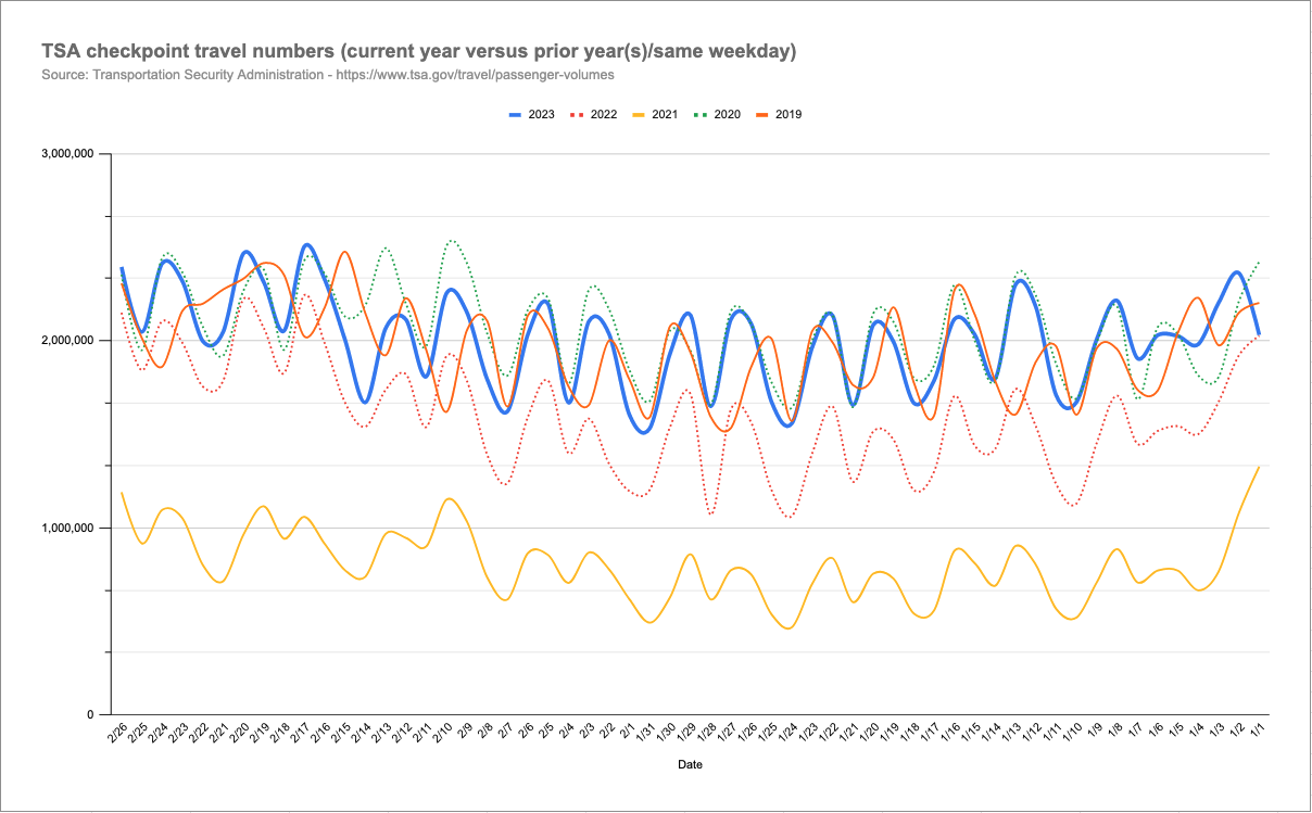However, over the course of the past year, there have been signs of a resurgence in air travel. Bookings and passenger numbers have been steadily increasing, and airlines and airports are beginning to recover. For example, in the United States, the Transport Security Administration reports that passengers screened through their security checkpoints for the first 57 days of 2023 are already equalling and surpassing pre-pandemic levels.
